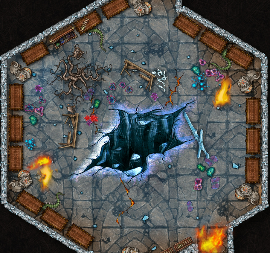 A hexagonal space, with bookshelves and chests lining the walls — walls that are in noticably worse condition than you remember them being.