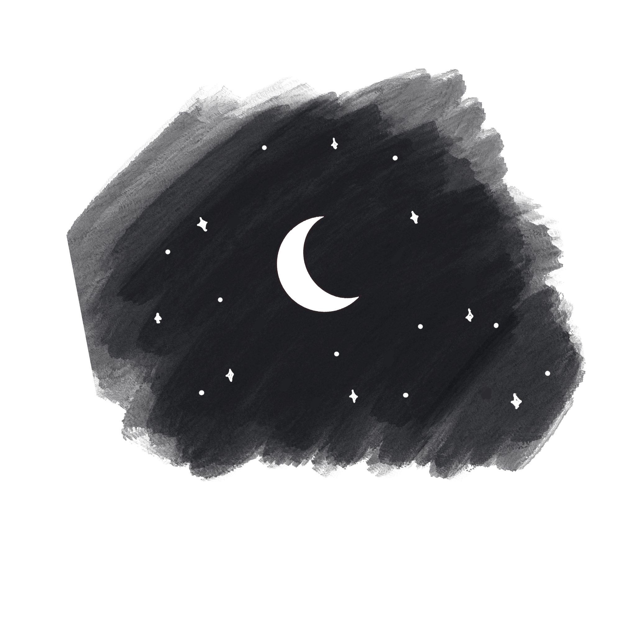 The crescent moon hangs above them, bright and silver against the midnight sky.
